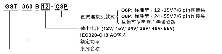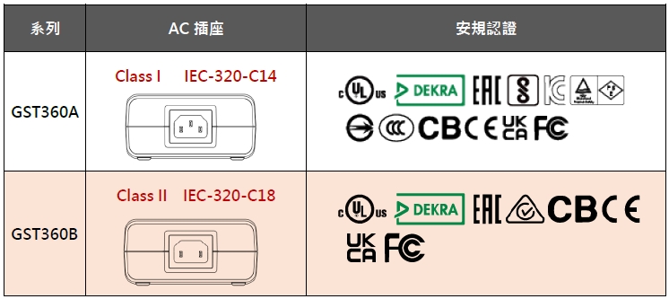 其余規格特點皆同GST360A系列,包含: 采工業級耐用、適用全球各國、環保節能概念設計、額定功率360W,可供載450W (3秒)、可使用在-30~+70℃各種環境溫度、嚴選用料提供3年保固、擁有多國環球認證、并通過Level VI國際能效標準,因此不論在空載待機時或使用中,皆能有效地達到節能減碳之目的。適合應用于商辦設備、工業儀器或需要符合能耗標準之各類系統,如: 3D打印機、POS系統、游戲機、可攜式擴音機、移動式舞臺燈、PoE…等。