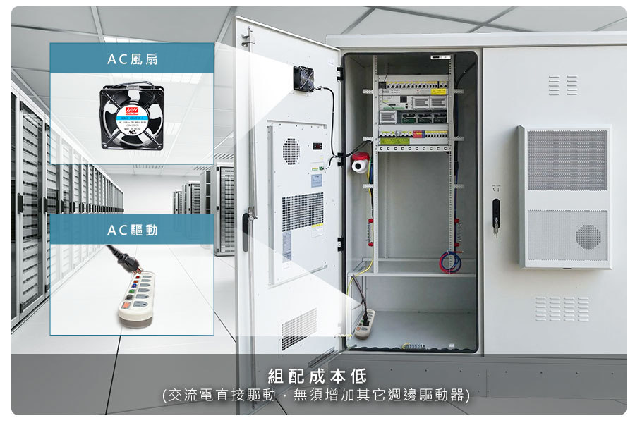 PowerNex 交流散熱風扇使用滾珠軸承,通過 UL 507 認證標準,亦符合歐盟 CE 規范,且經過多項可靠度驗證,產品長時間使用安全可靠;可應用于家電、醫療、工業配電、儲能、電梯、機械設備、工具機等設備。