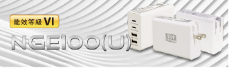 Type-C 充電接口標準化實施后,對地球環境、電子制造商、消費者都將有變革性影響,包含有助減少大量電子垃圾污染、充電器及充電線進入標準化時代、消費者可節省采購不同充電器或充電線的花費及充電接口不兼容所造成的不便。明緯為響應環保愛地球及順應時勢所需,正式重磅新上市一款高性價比 100W 環球通用 4 埠 USB 氮化鉀 GaN 快速充電器 ~ NGE100 (國際版)及 NGE100U (美規版)。