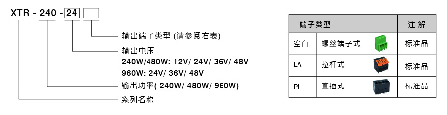 XTR-240/ 480/ 960系列:240W/ 480W/ 960W全新世代3?輸入超薄高效耐用導軌電源