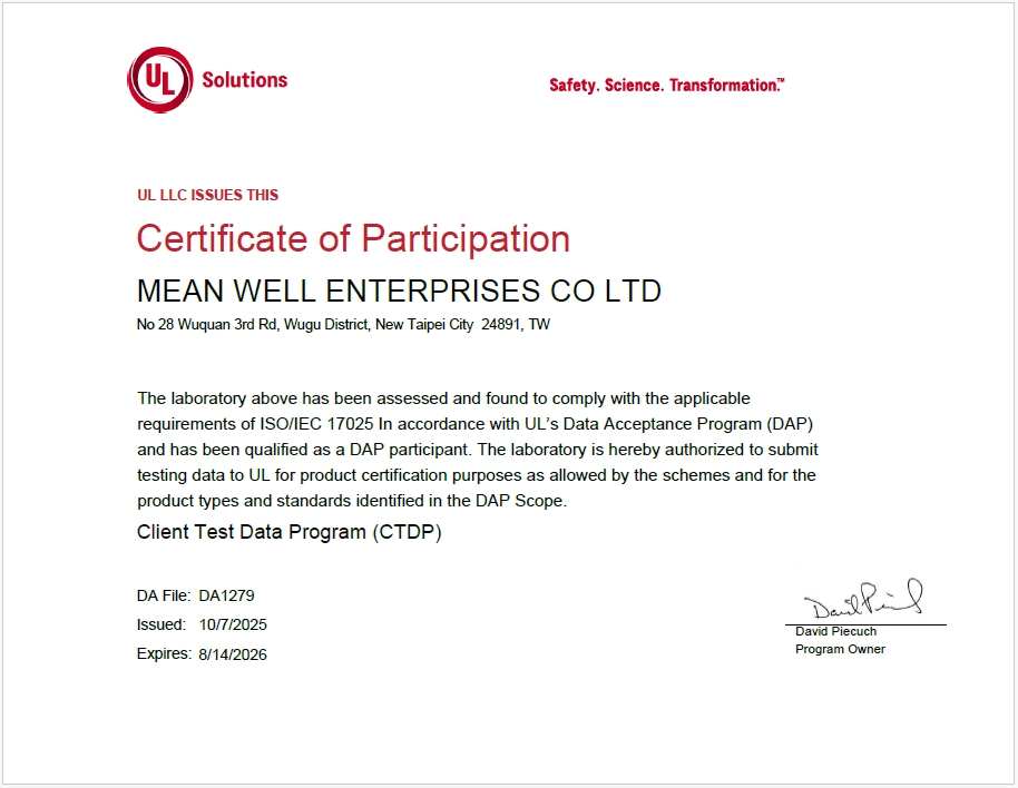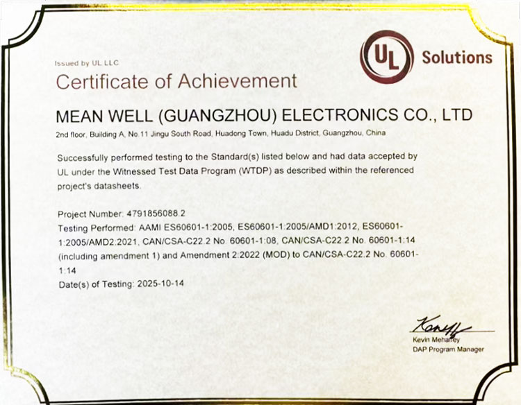明緯榮獲 UL、DEKRA 認可 CTDP(WTDP) 及CTF 醫(yī)療安規(guī)實驗室資格認證,持續(xù)提升全球認證核心競爭力